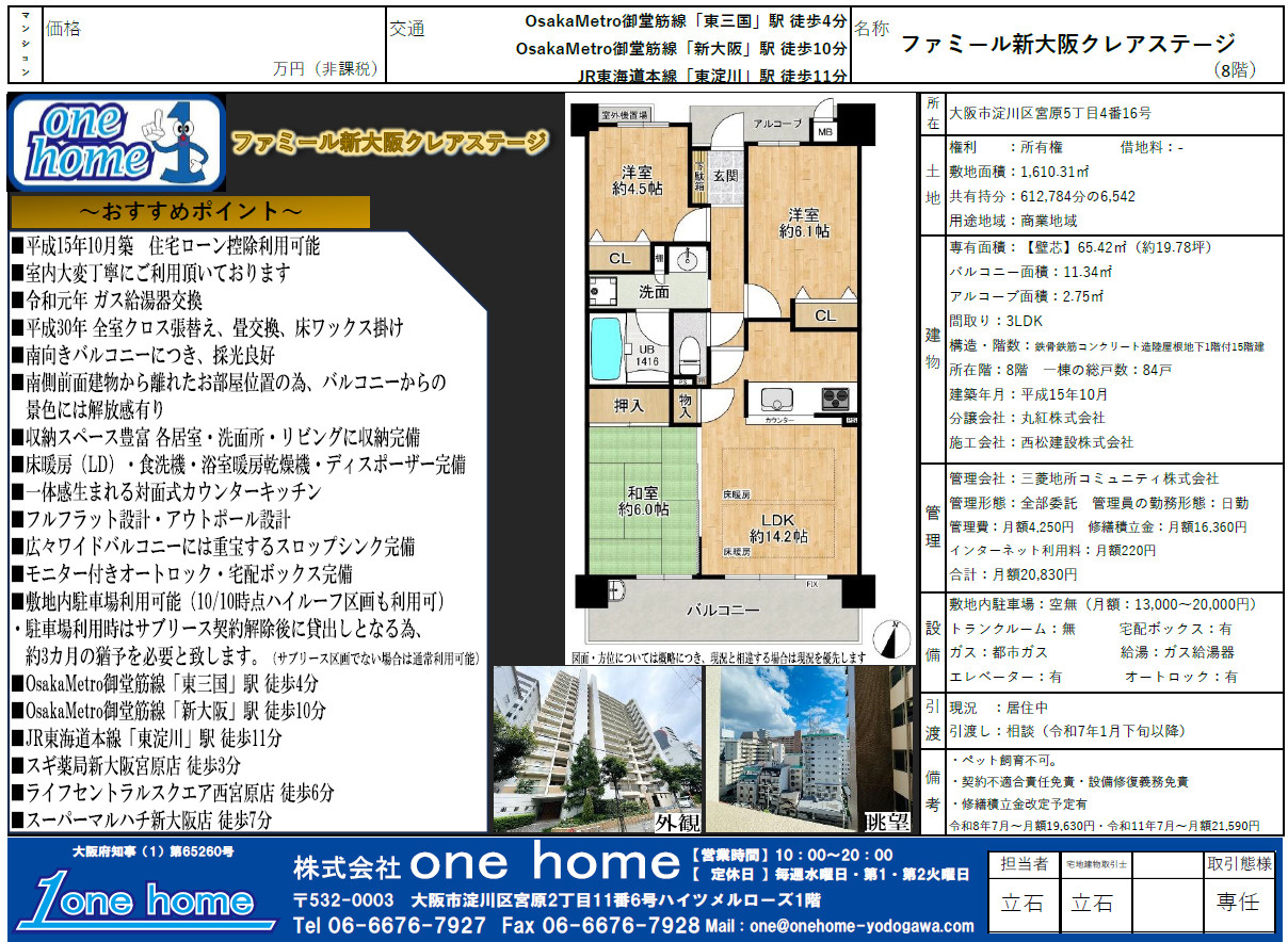 担当:立石です!! 【ファミール新大阪クレアステージ】売却実績件数:4件超えました!!