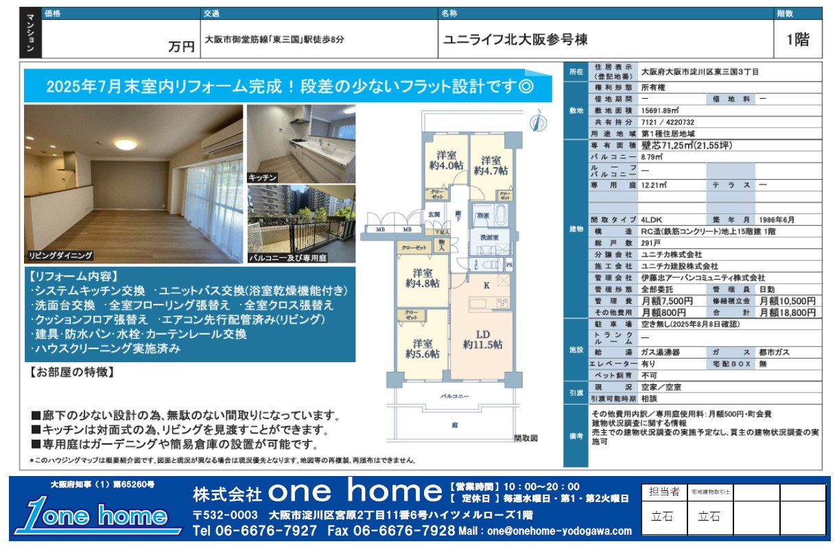 令和7年9月成約実績【ユニライフ北大阪参号棟】