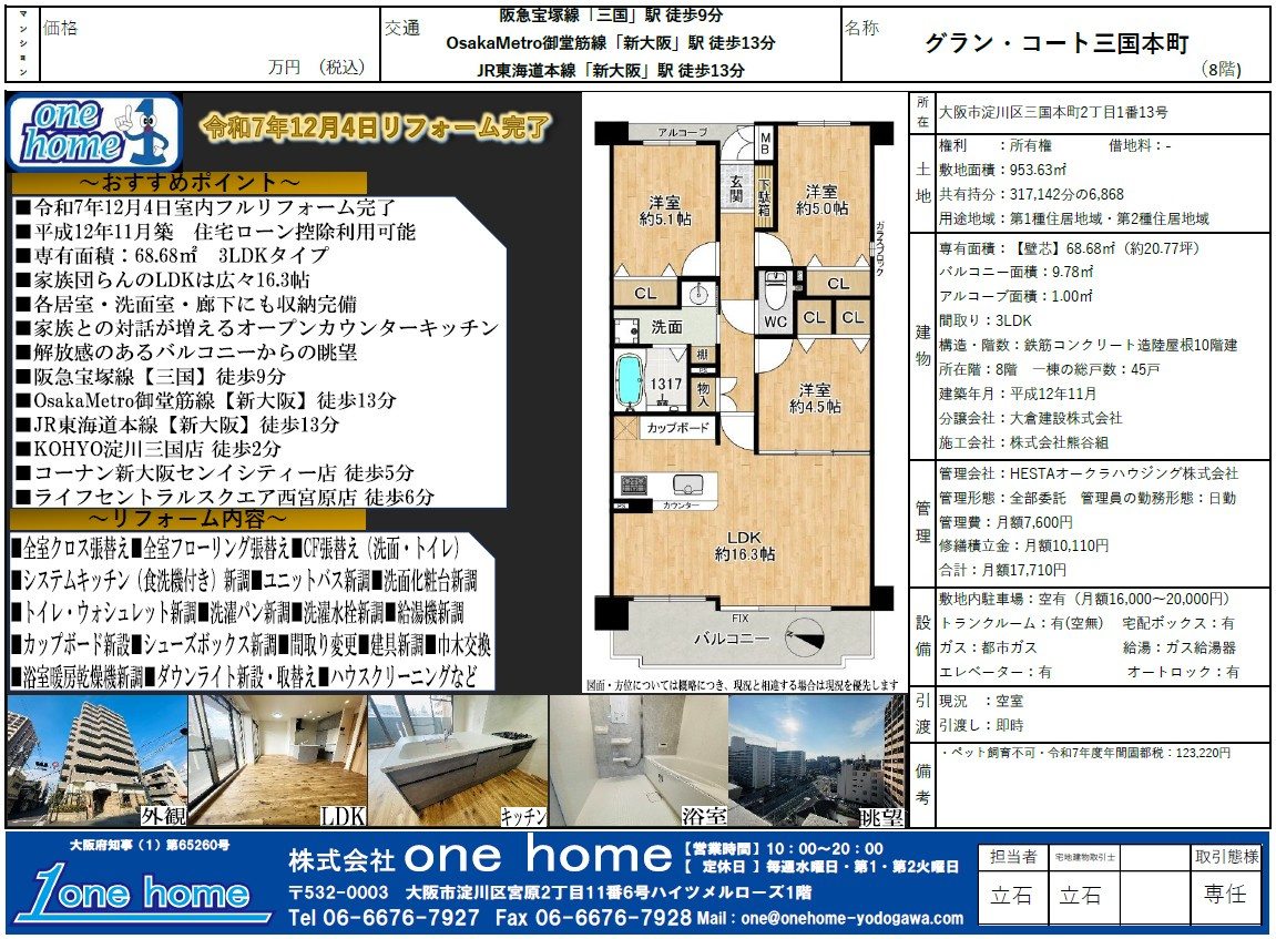 【グラン・コート三国本町】のご売却は実績豊富のone homeにお任せください。