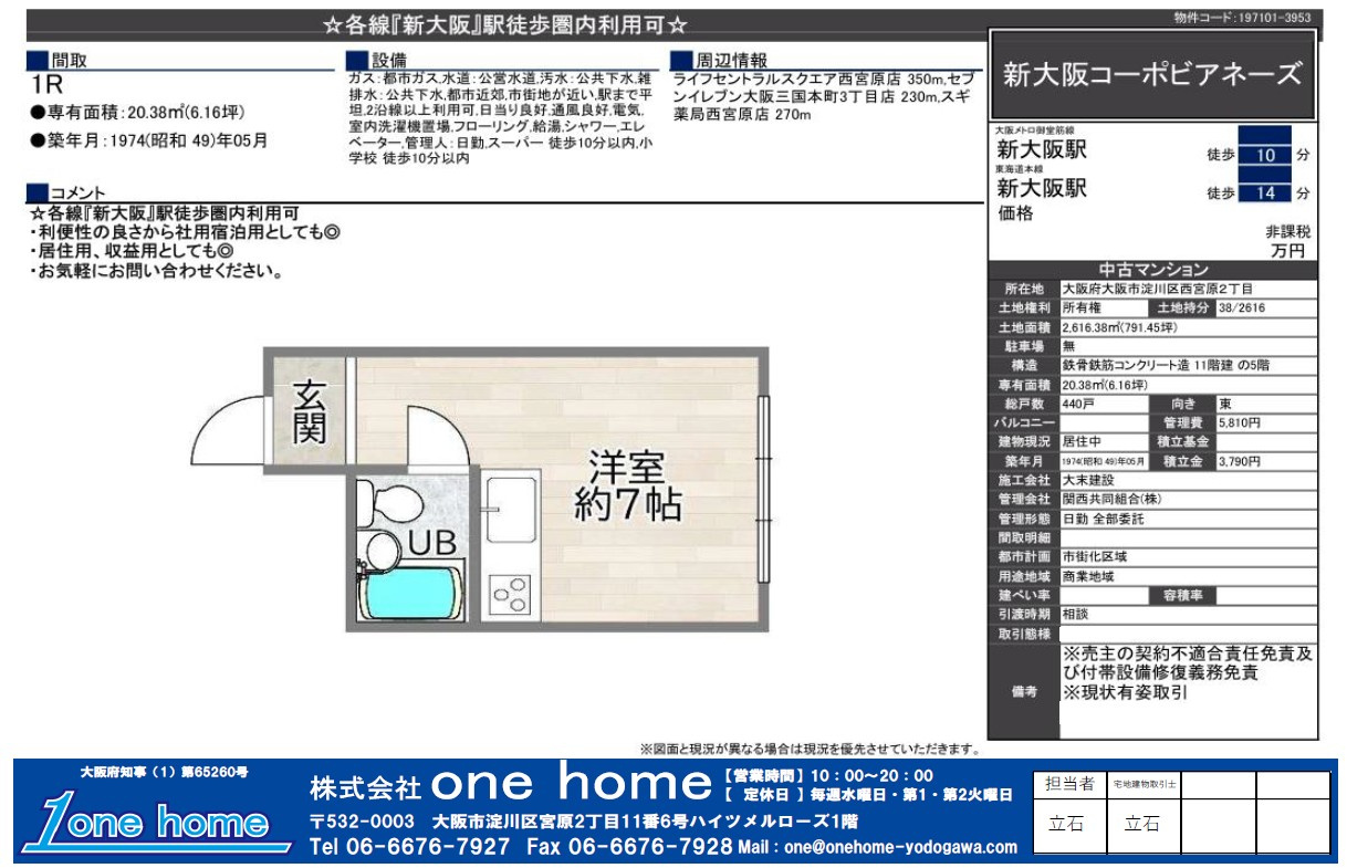 昭和49年築・専有面積:20.38㎡・1Rタイプ!! OsakaMetro御堂筋線「新大阪」駅徒歩10分、淀川区西宮原2丁目に位置するマンション♪