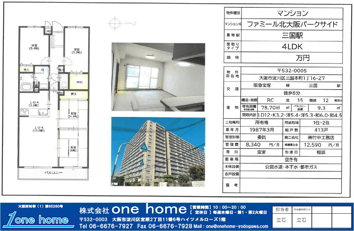 査定は無料です♪【ファミール北大阪パークサイド】のご売却は実績豊富のone homeにお任せください。淀川区の売却物件大募集!! 買取のご相談も大歓迎です♪