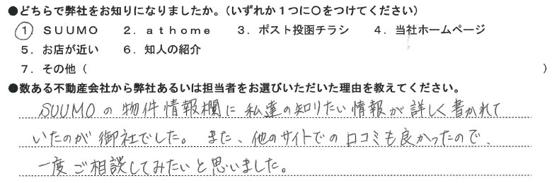 - 数ある不動産会社から弊社あるいは担当者をお選びいただいた理由を教えてください。